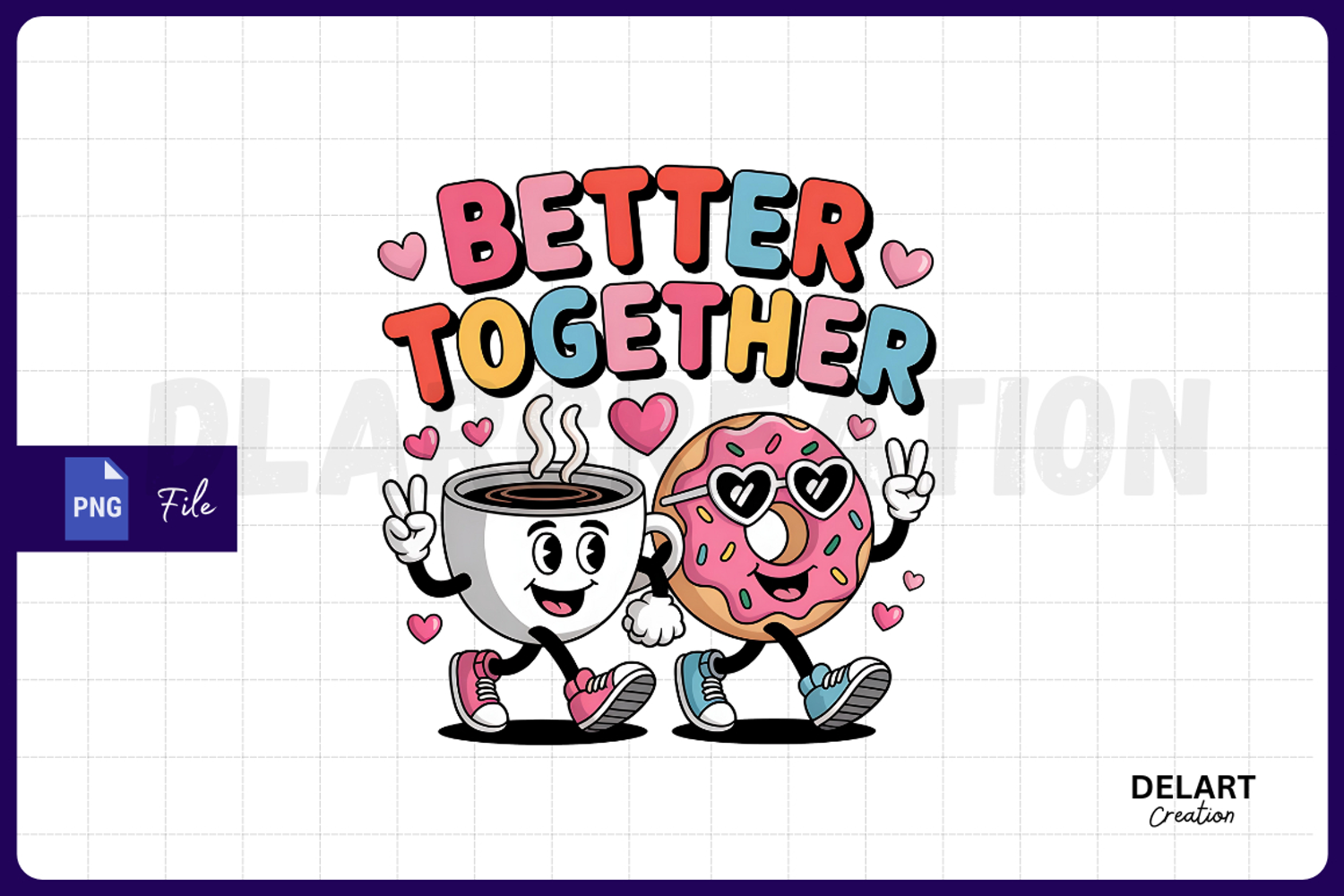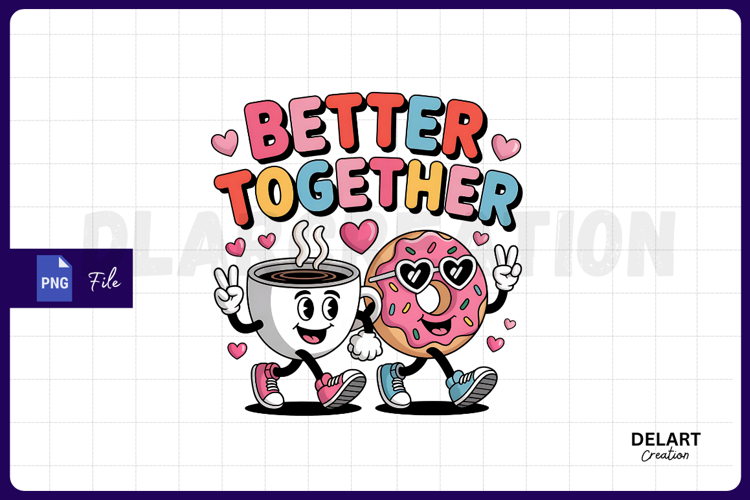 Retro Coffee Donut Better Together PNG Design example image 1