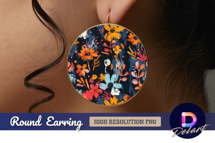 Abstract floral pattern graphic Round Earring PNG example image 1