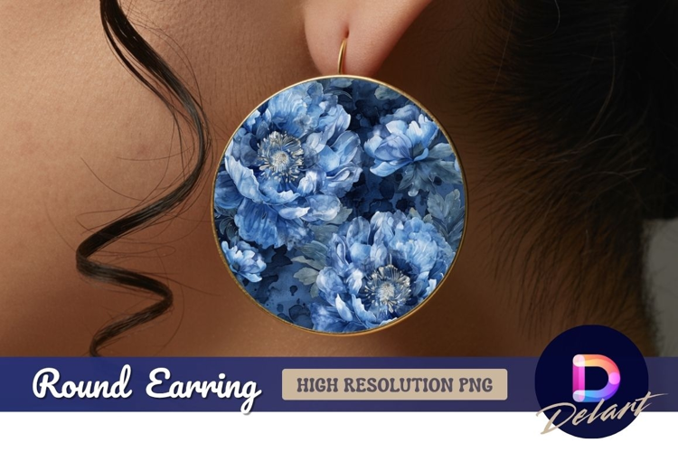 Watercolor blue peonies elegant floral Round Earring PNG example image 1