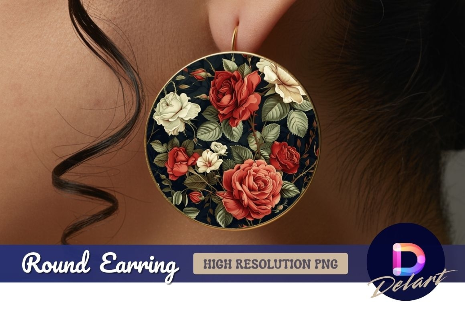 Round Design Floral Flower Pattern Rose Png Roses Red Earring