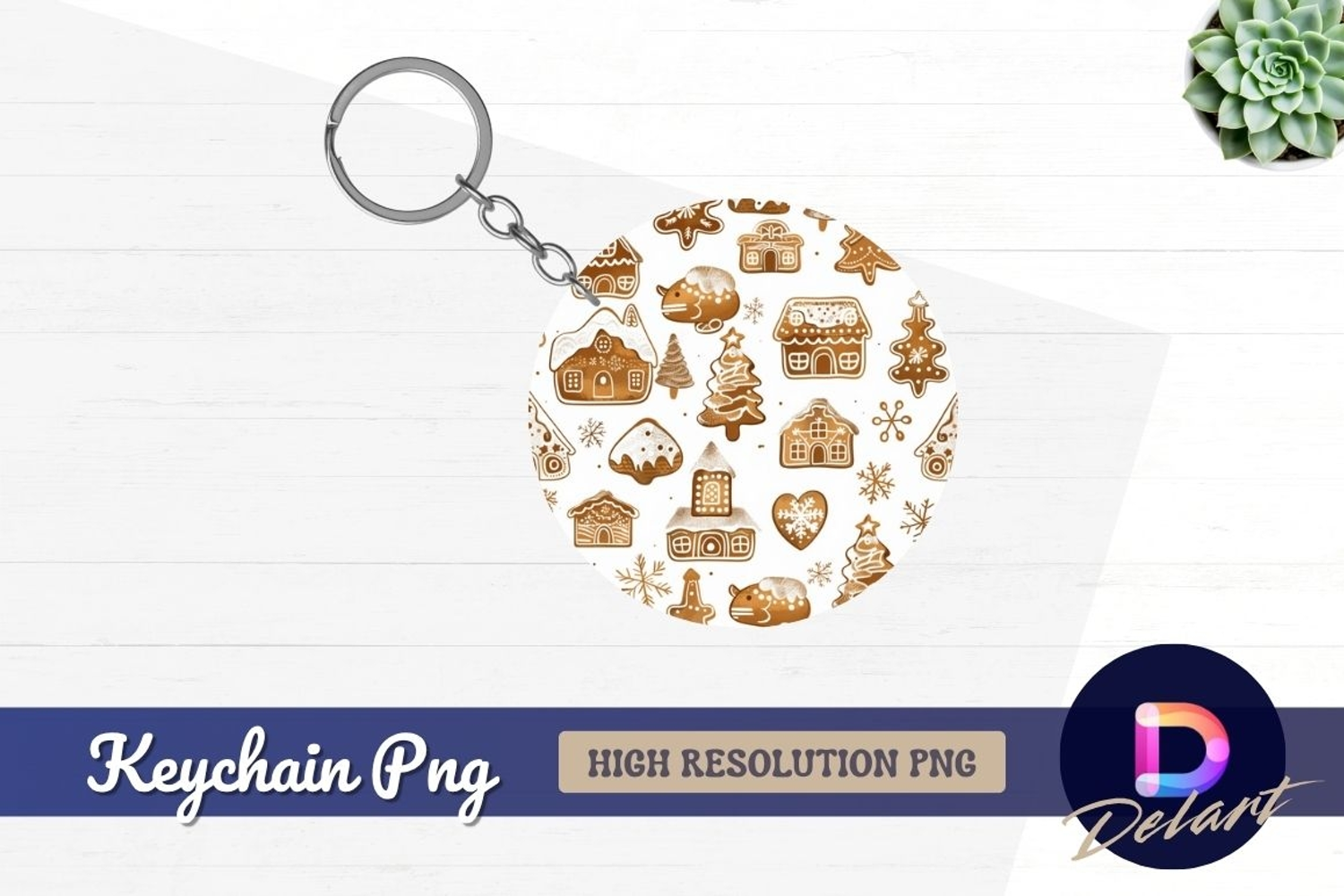 Round Holiday Tree Christmas Pattern Png House Gingerbread Cookies Keychain