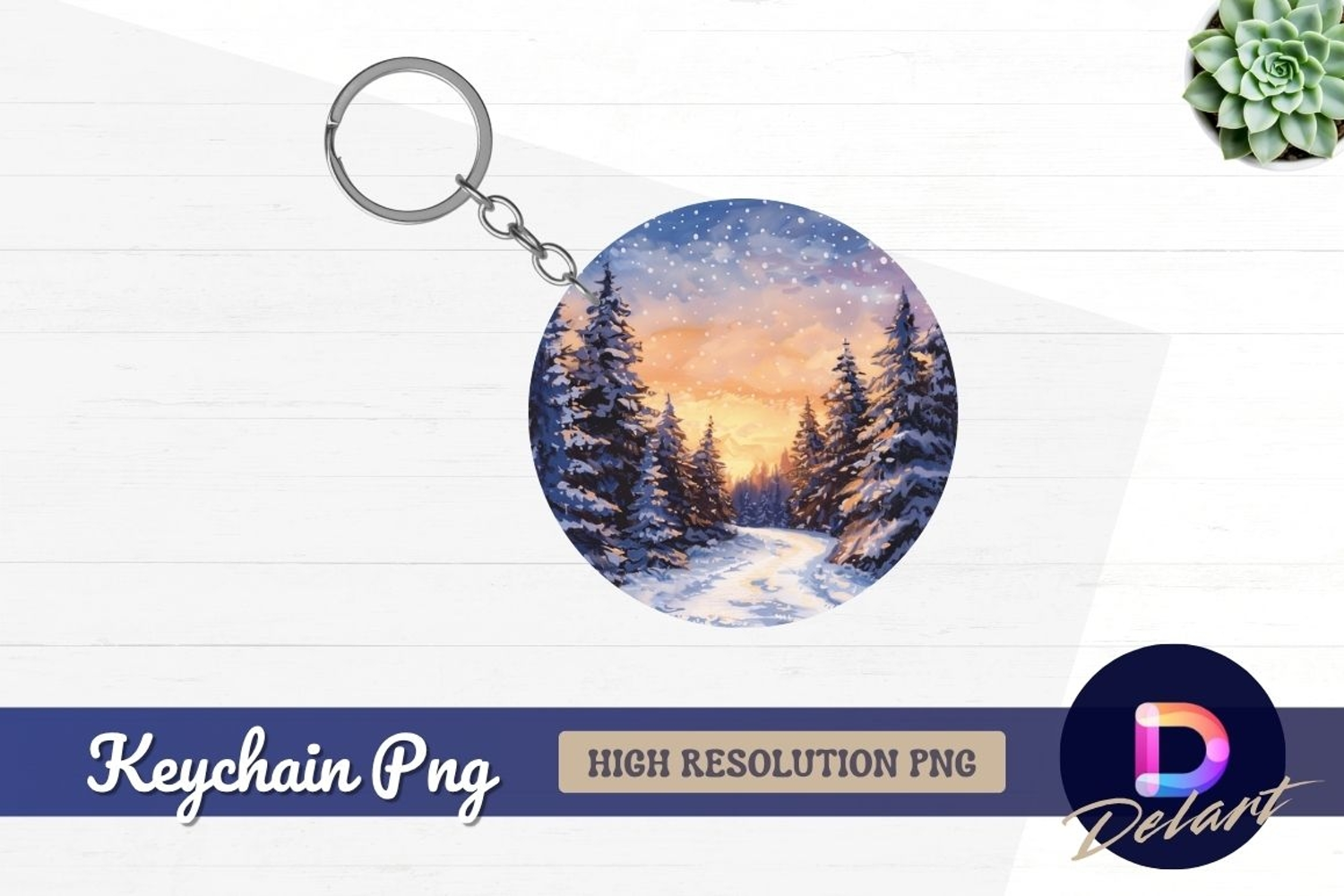 Similar Design Products to Snowy winter forest path Round Keychain PNG