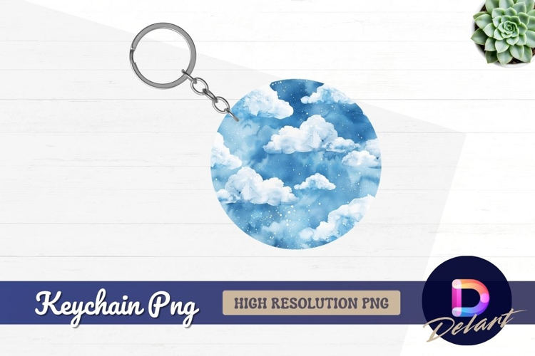 Watercolor sky with clouds Round Keychain PNG example image 1