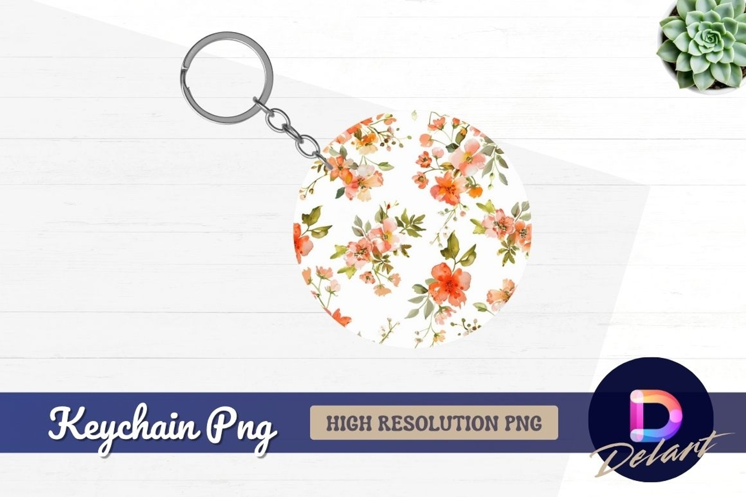 Watercolor orange floral patter Round Keychain PNG example image 1