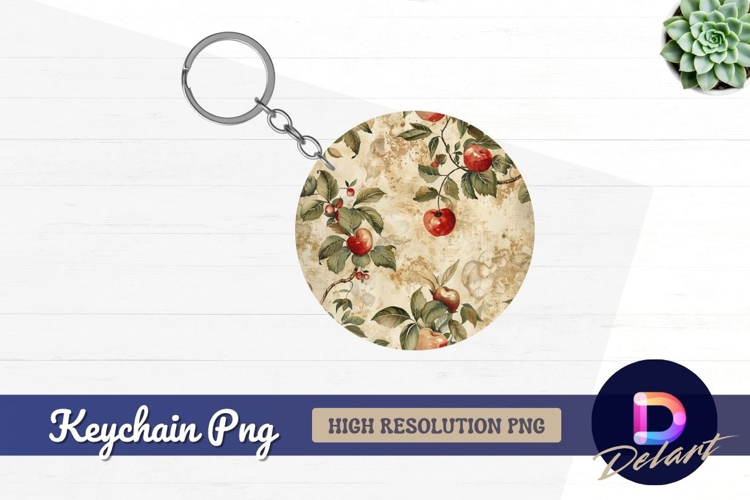 Similar Design Products to Watercolor apples and leaves Round Keychain PNG