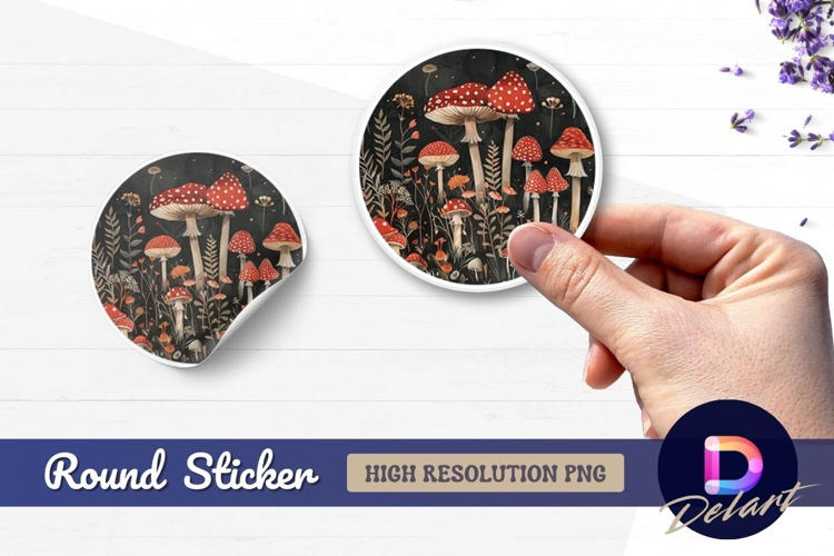 Whimsical mushroom illustration Round Sticker PNG example image 1