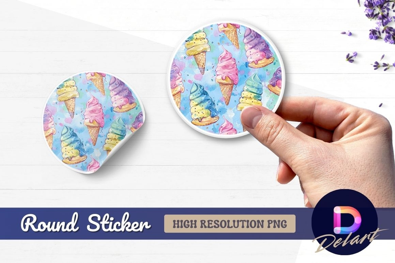Watercolor ice cream cones pattern Round Sticker PNG example image 1