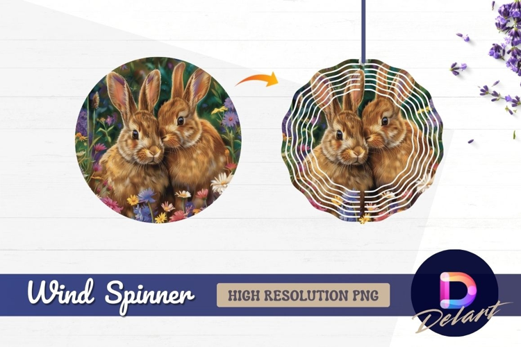 Two rabbits surrounded by flowers Round Wind Spinner PNG example image 1