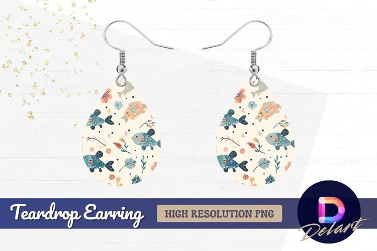 Cute fish and floral pattern Teardrop Earring PNG example image 1