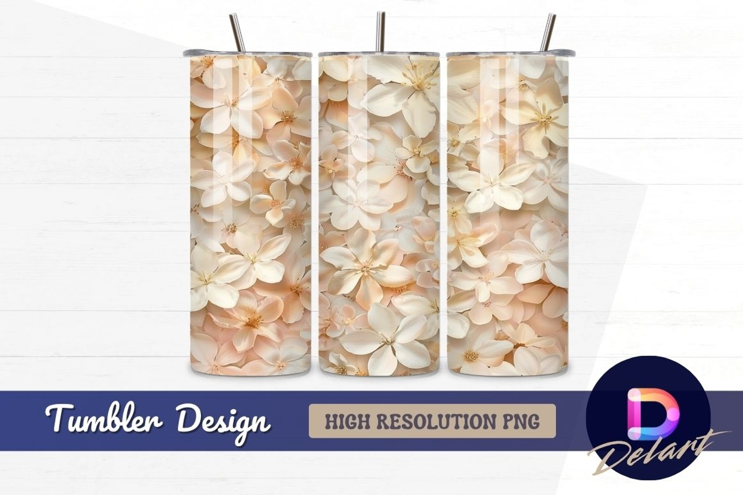 Similar Design Products to Delicate peach and white flowers Tumbler PNG Design