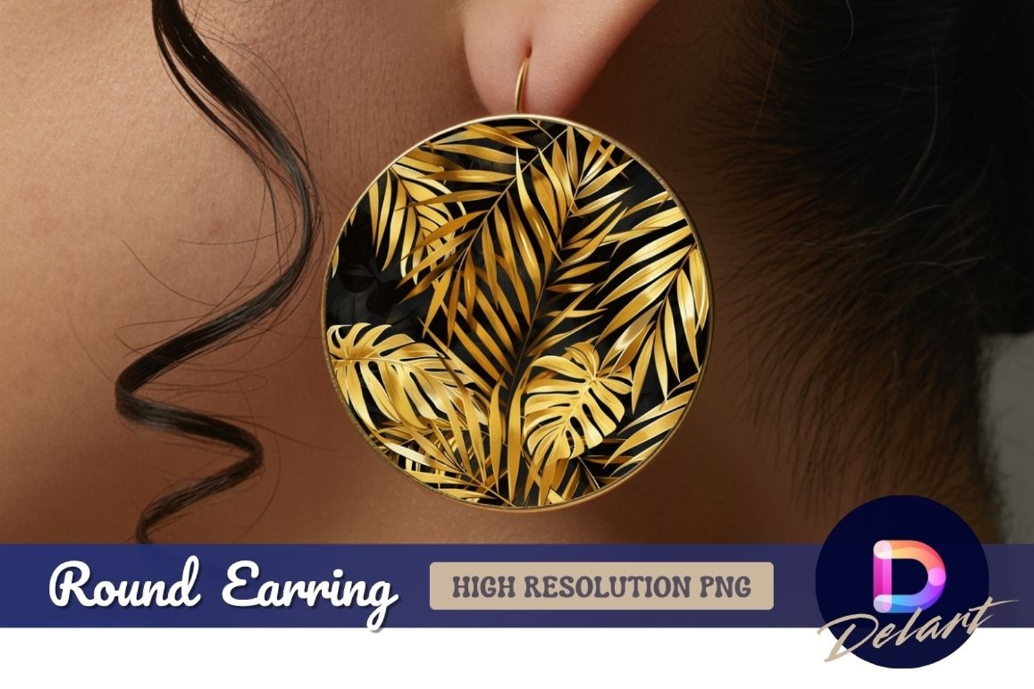 Illustration Elegant Round Golden Tropical Png Circle Black Background Palm Leaves Earring