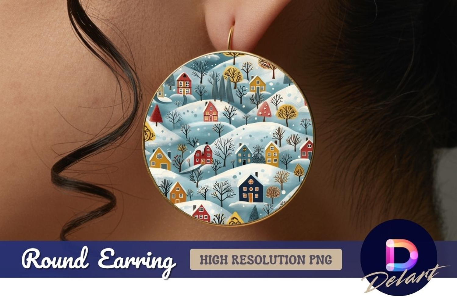 Similar Design Products to Winter village illustration Round Earring PNG