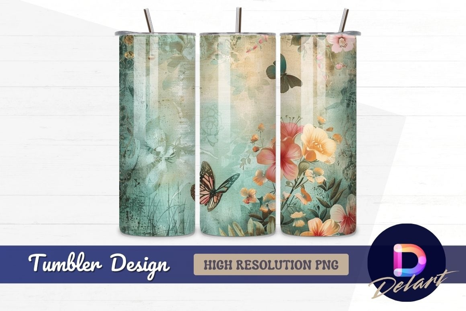 Vintage floral butterfly background Tumbler PNG Design example image 1