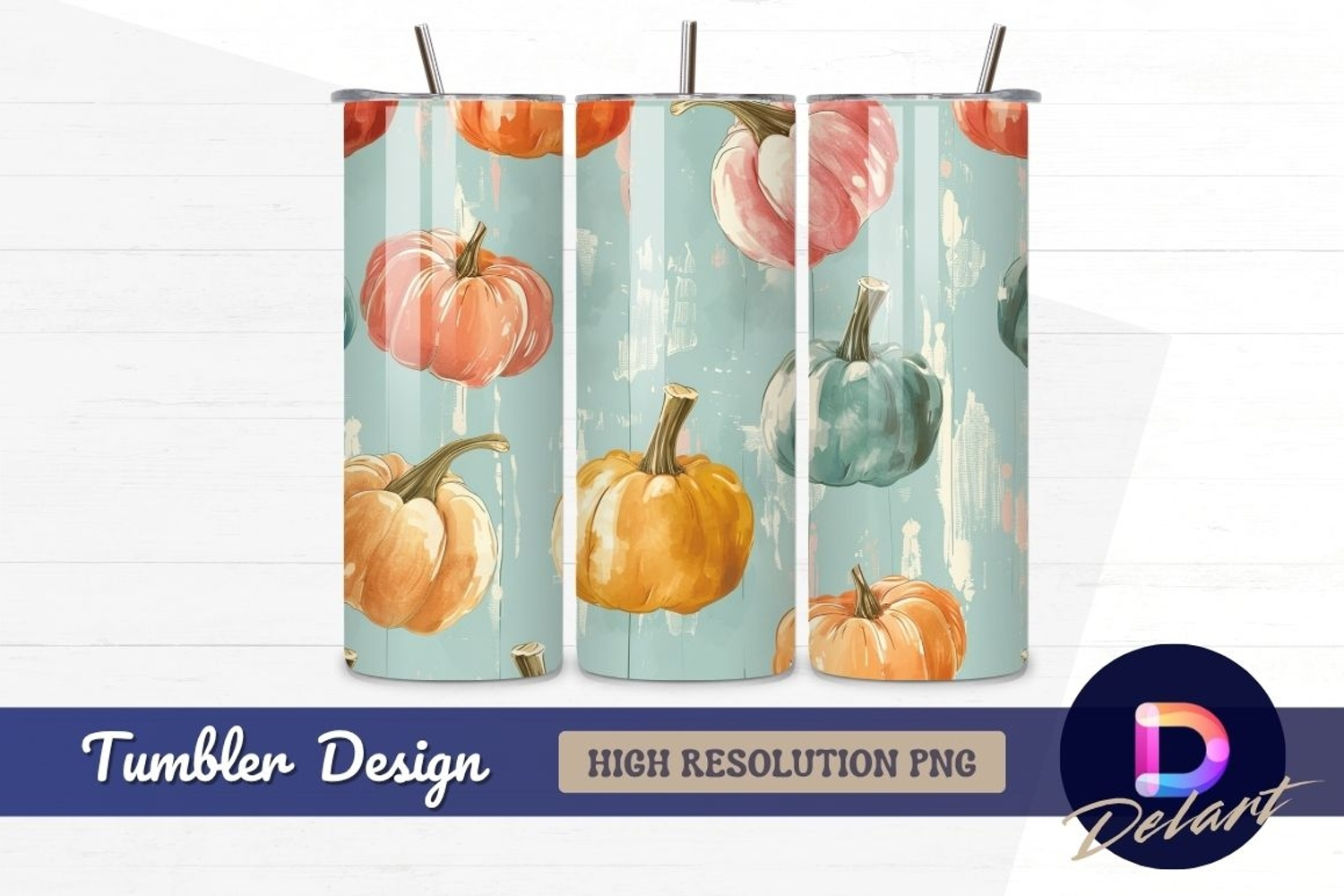 Pastel pumpkin light blue wood Tumbler PNG Design example image 1