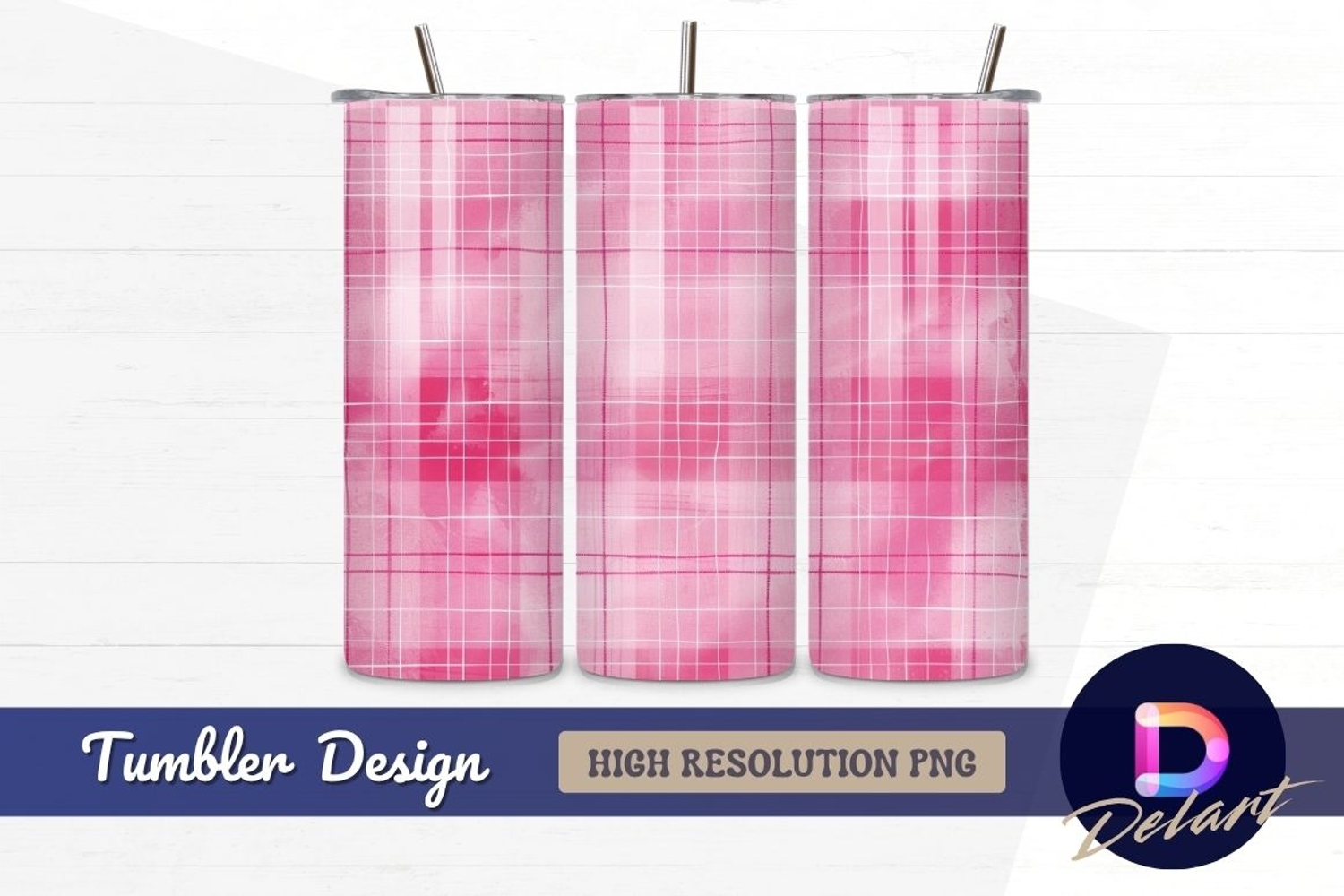 Pink watercolor plaid pattern Tumbler PNG Design example image 1