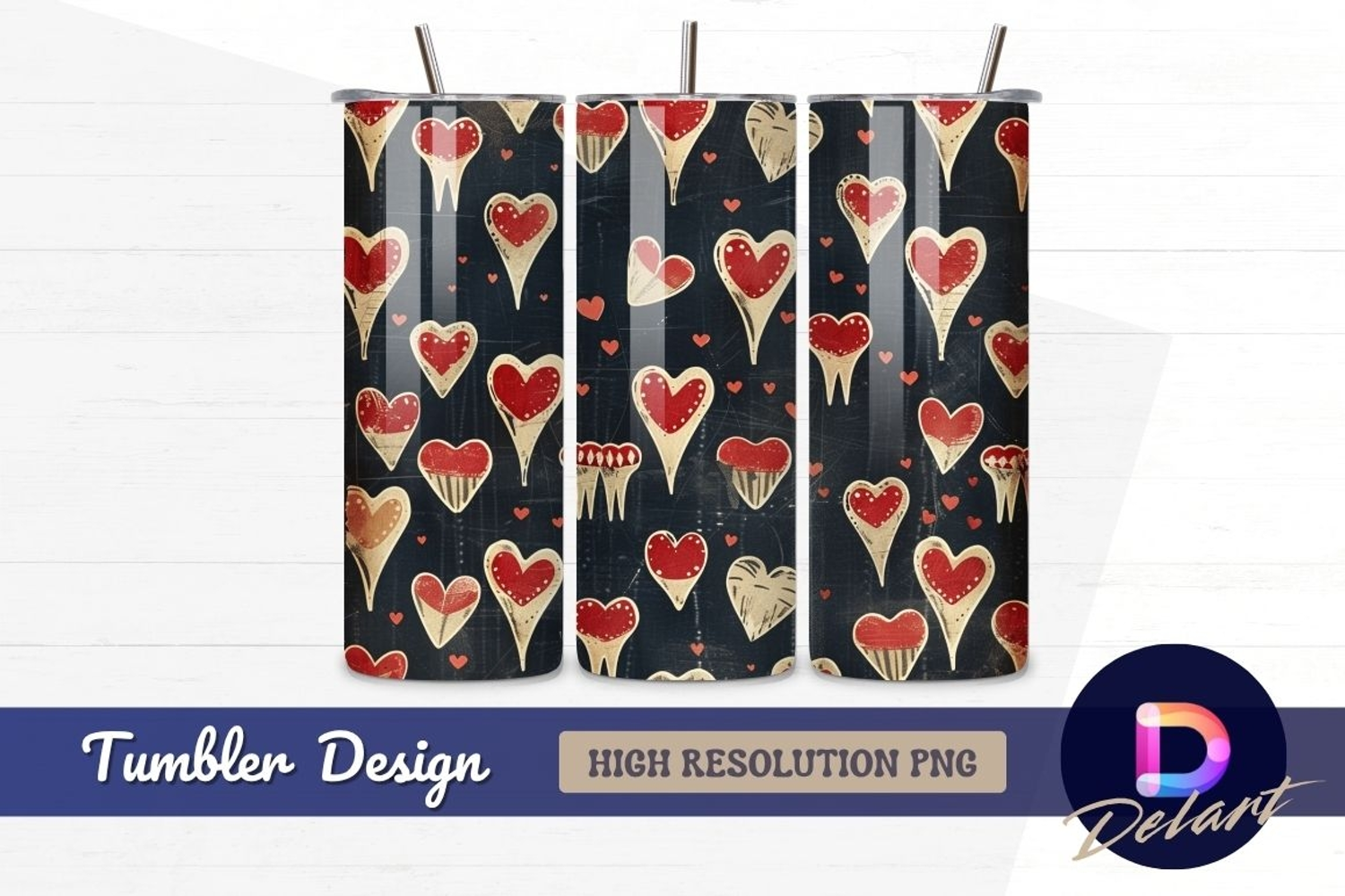 Hand drawn hearts seamless pattern Tumbler PNG Design example image 1