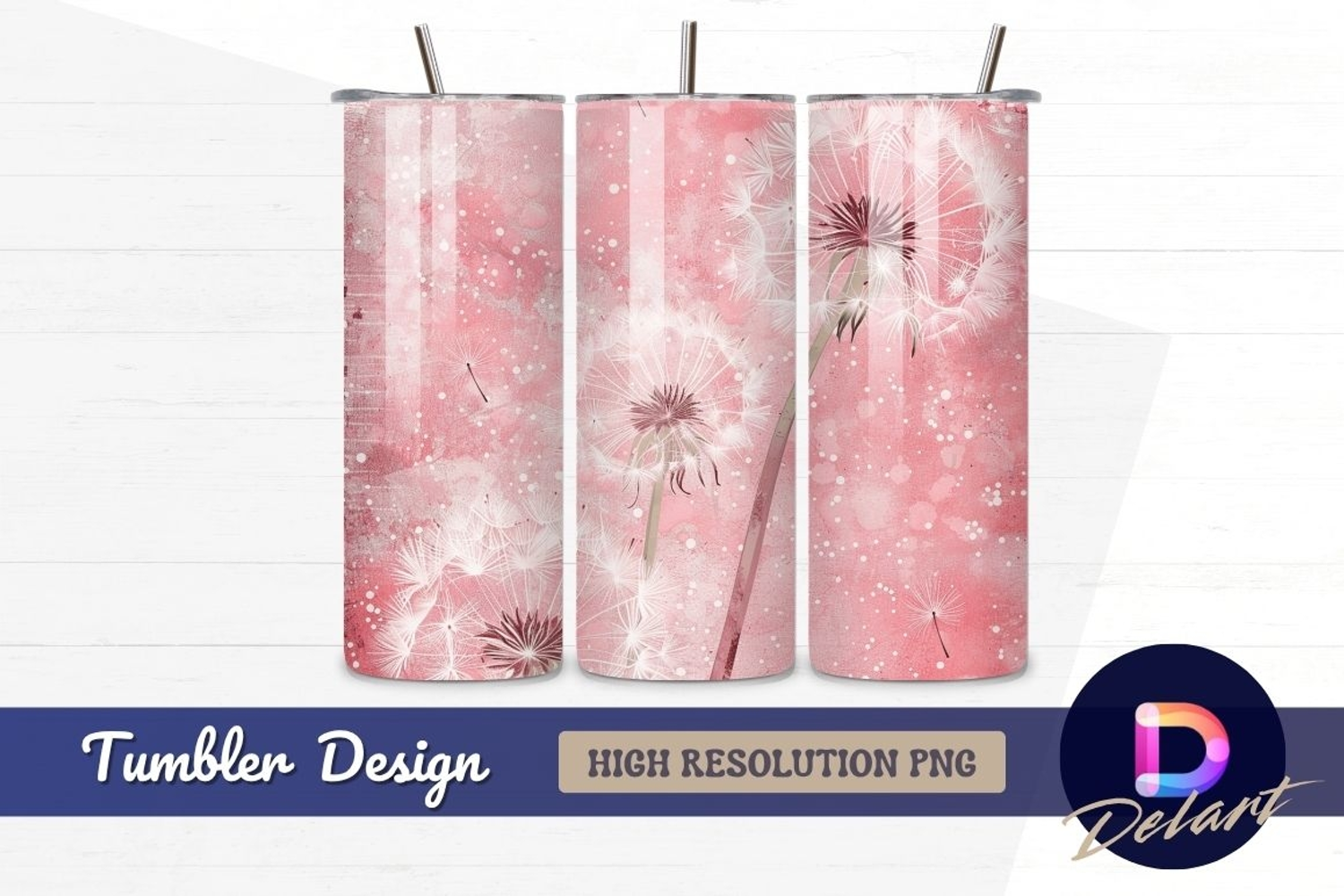 Pink dandelion flower pattern Tumbler PNG Design example image 1