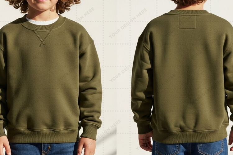 Men's olive green crew neck sweatshirt T-shirt Mockup Design