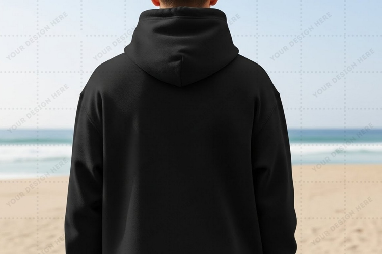Branding Ocean Outdoor Beach Sand Custom Design Hoodie Mockup Design Black Hoodie Casual Wear