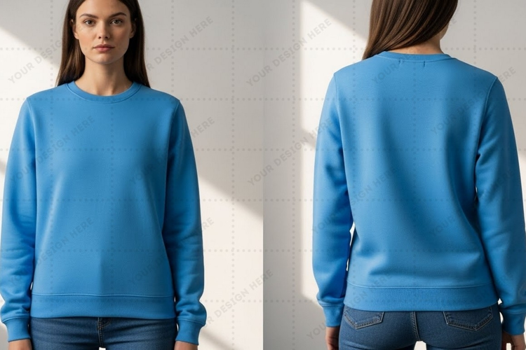Branding Clothing Mockup Apparel Blue Front View Back View Sweatshirt Custom Design Crew Neck