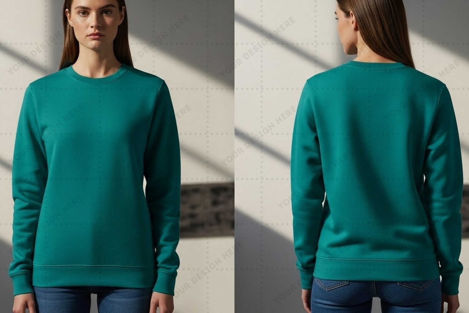 Teal crew neck sweatshirt for women T-shirt Mockup Design