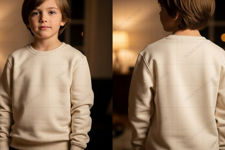 Cream crew neck sweatshirt for kids T-shirt Mockup Design example image 1