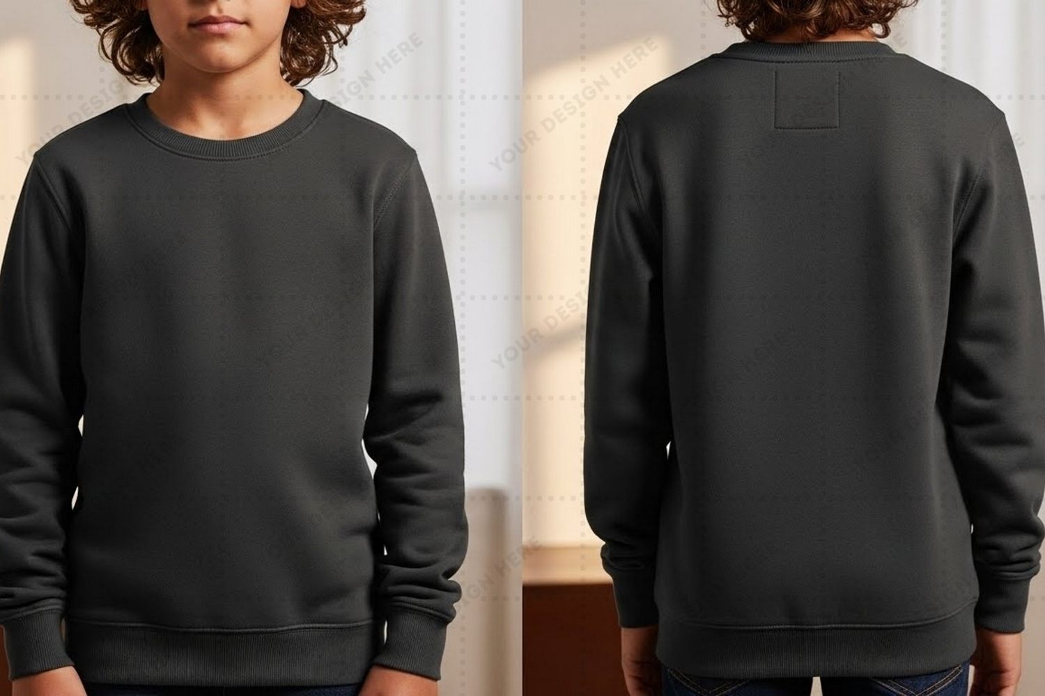 Sweatshirt Mockup Design Dark Grey Crew Neck Long Sleeves Men's Clothing Casual Wear Sweatshirt Design Relaxed Fit Comfortable Fabric