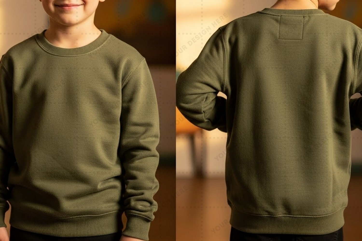 Olive green crew neck sweatshirt for kids T-shirt Mockup Design