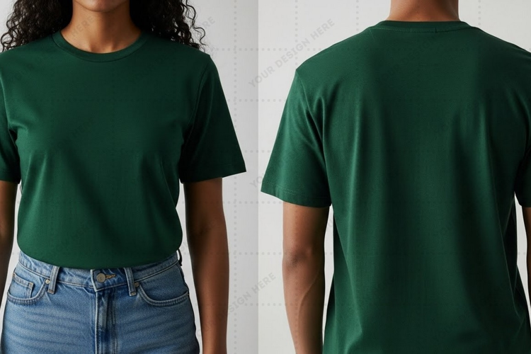 Design T-shirt Clothing Mockup Apparel Model Front View Back View Custom Design Dark Green