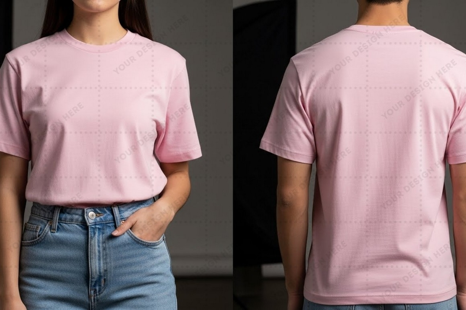 Fashion T-shirt Clothing Apparel Jeans Front View Back View Mockup Design Casual Wear Pink T-shirt