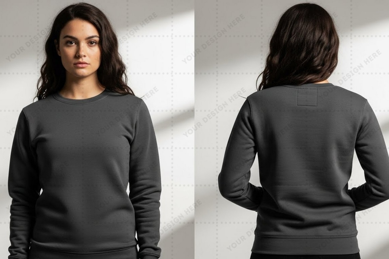 Branding Fashion Clothing Apparel Front View Back View Custom Design Mockup Design Long Sleeve Women's T-shirt