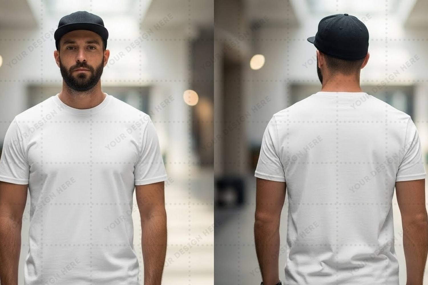 Branding T-shirt Mockup Front View Back View Custom Design Short Sleeves White T-shirt Crew Neck Casual Wear