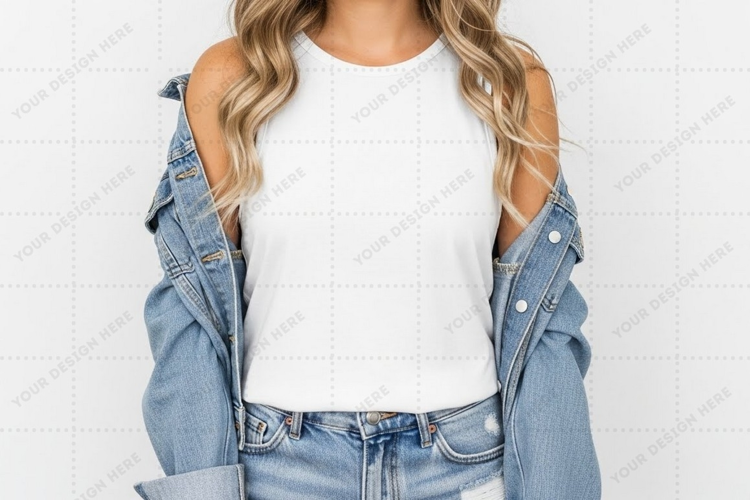 Fashion T-shirt Jeans Street Style Mockup Design White T-shirt Women's Clothing Casual Wear Denim Jacket Casual Outfit