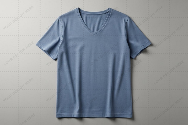 T-shirt Clothing Mockup Apparel Light Blue Design Template Custom Design Neutral Background V-neck
