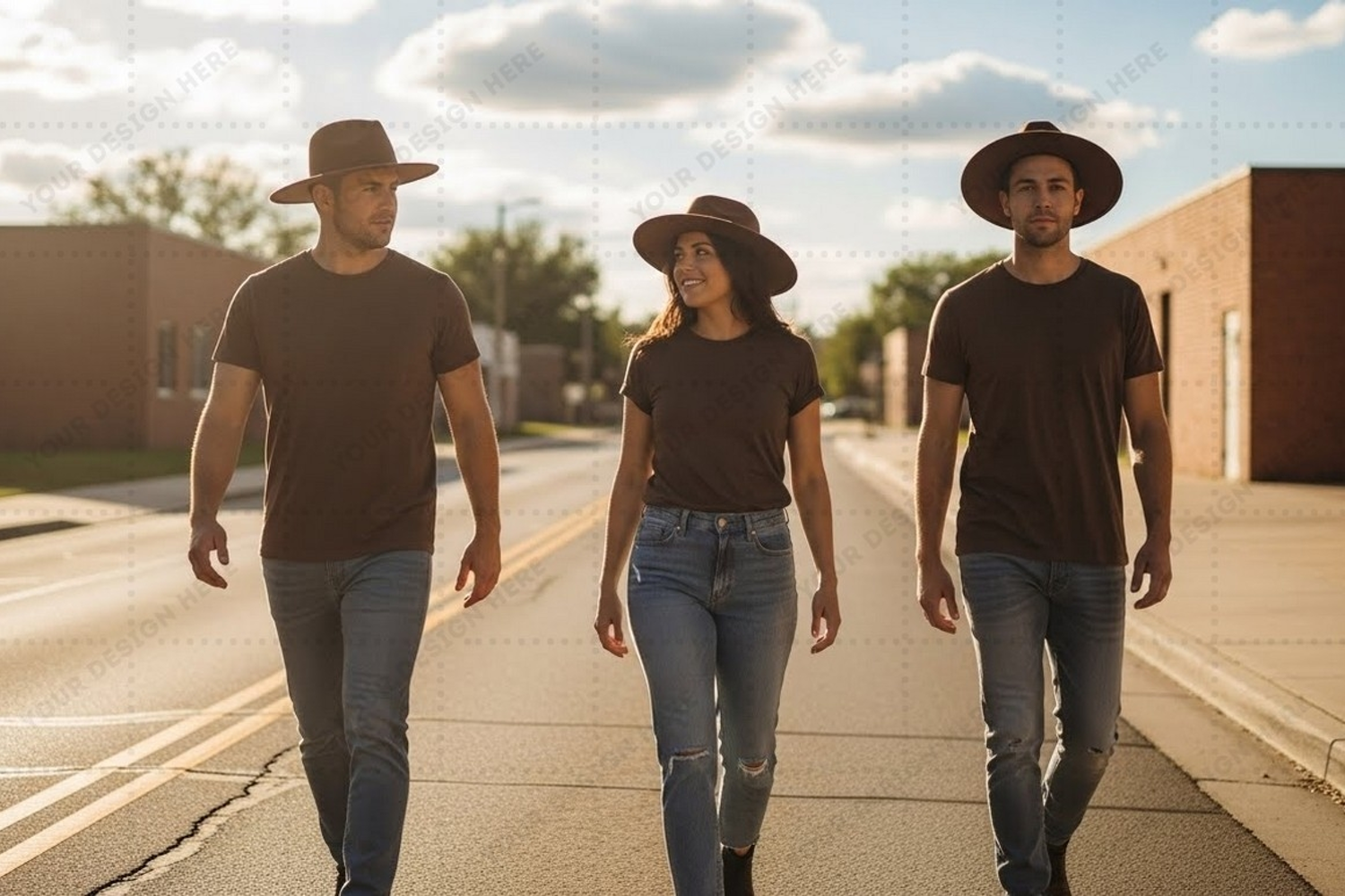 T-shirt Simple Design Friends Summer Fashion Cowboy Hat Casual Fashion Casual Wear Outdoor Scene Comfortable Clothing Suburban Street