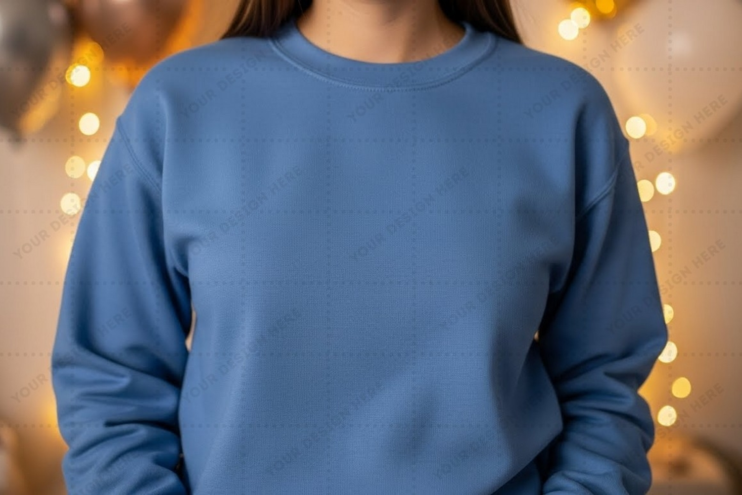 Branding Fashion T-shirt Model Custom Design Mockup Design Crew Neck Long Sleeves Blue T-shirt Casual Wear