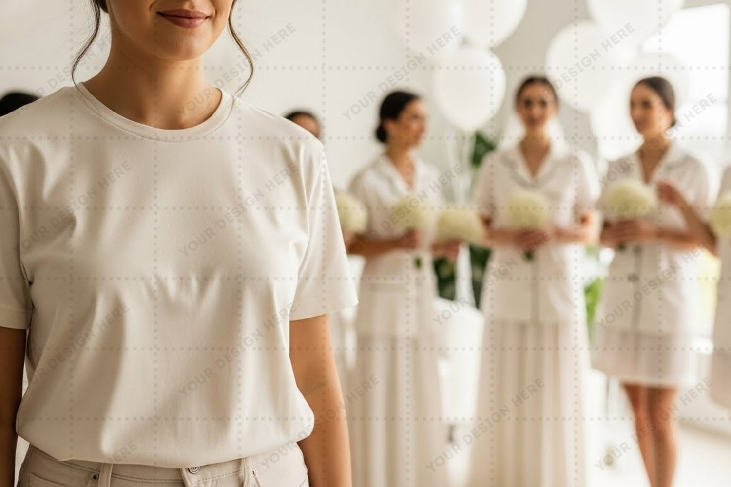 White t-shirt mockup design with bridesmaids