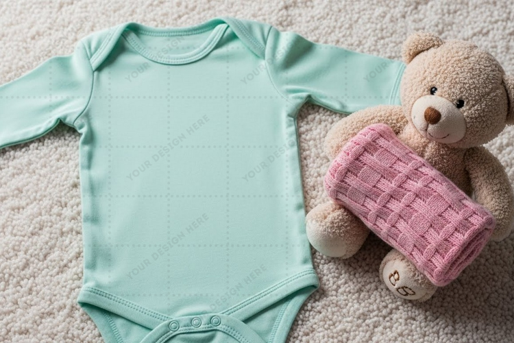 Similar Design Products to Baby onesie and teddy bear set mockup