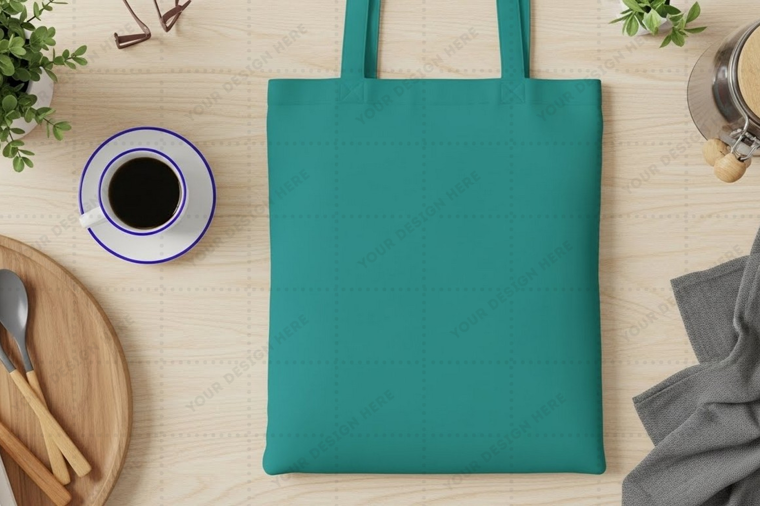 Eco-friendly teal tote bag mockup