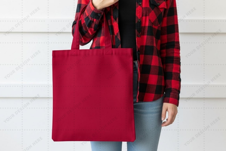 Shopping Bag Mockup Design Tote Bag Carry Bag Canvas Bag Stylish Bag Fashion Accessory Plaid Shirt Red Tote Bag Essentials Bag