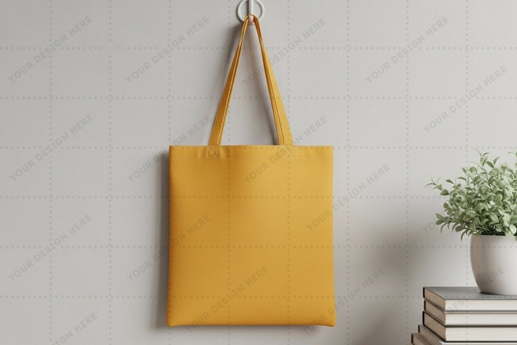 Modern Stylish Mockup Yellow Handbag Shopping Bag Home Decor Tote Bag Canvas Bag Wall Hook