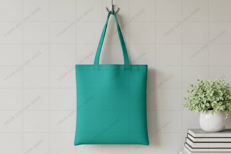 Mockup Teal Handbag Minimalist Design Shopping Bag Tote Bag Canvas Bag Reusable Bag Wall Hook Sturdy Handles
