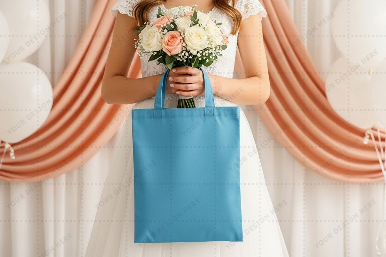 Wedding Fashion Flowers Mockup Accessory Handbag Shopping Bag Tote Bag Blue Tote Bag Carrying Bag