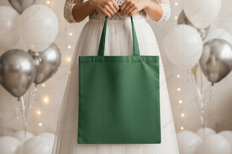 Branding Fashion Green Celebration Mockup Accessories Customizable Shopping Bag Balloons Tote Bag
