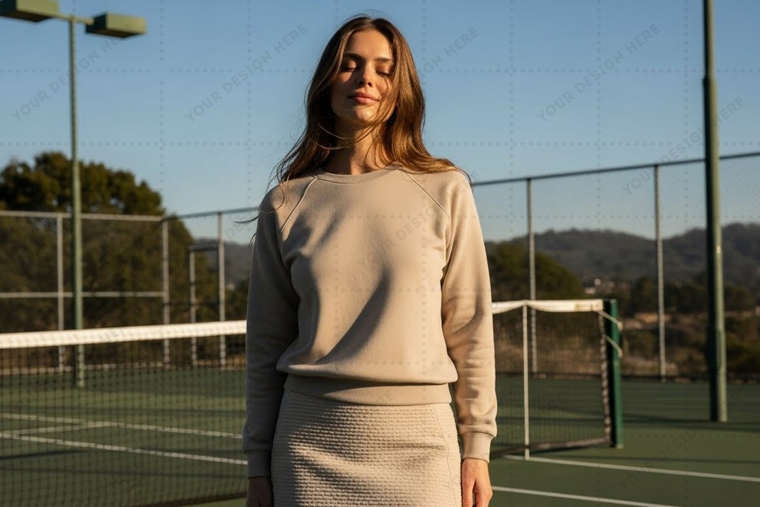 Women's tennis sweatshirt and skirt set mockup