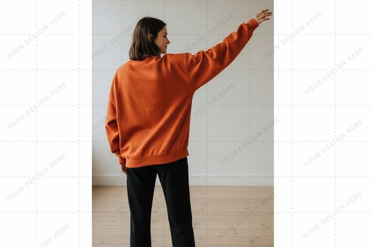 Design T-shirt Mockup Orange Comfortable Long Sleeves Oversized Casual Wear Loungewear Relaxed Fit