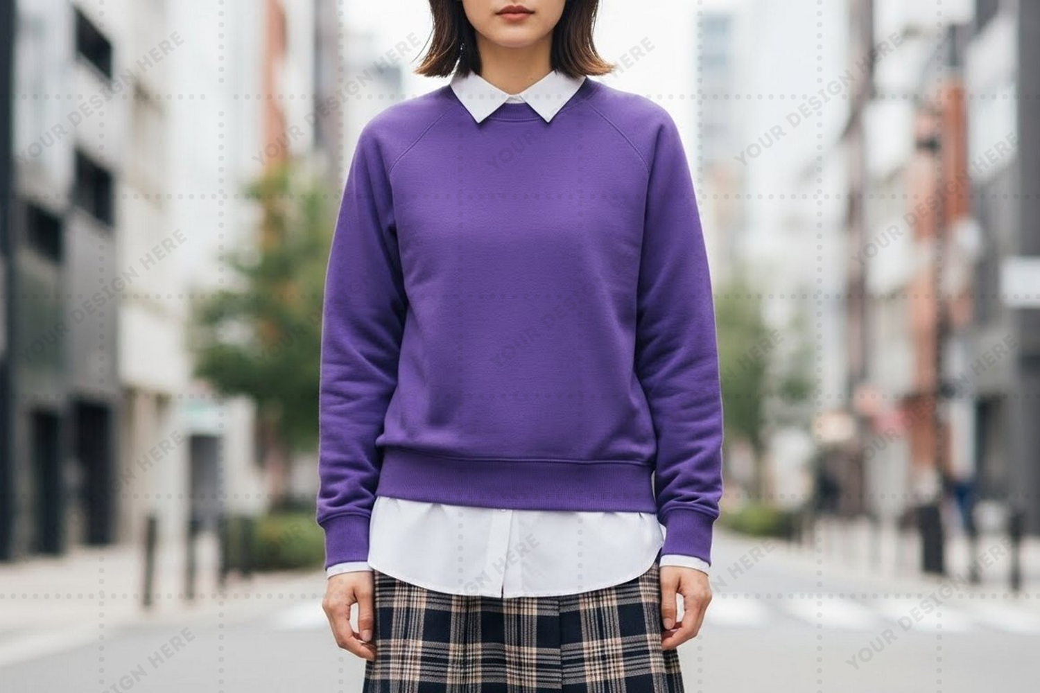 Violet sweatshirt with white collar mockup