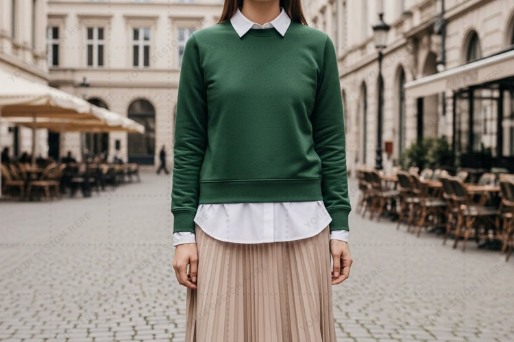 Similar Design Products to Green sweatshirt with collar over white shirt and mockup