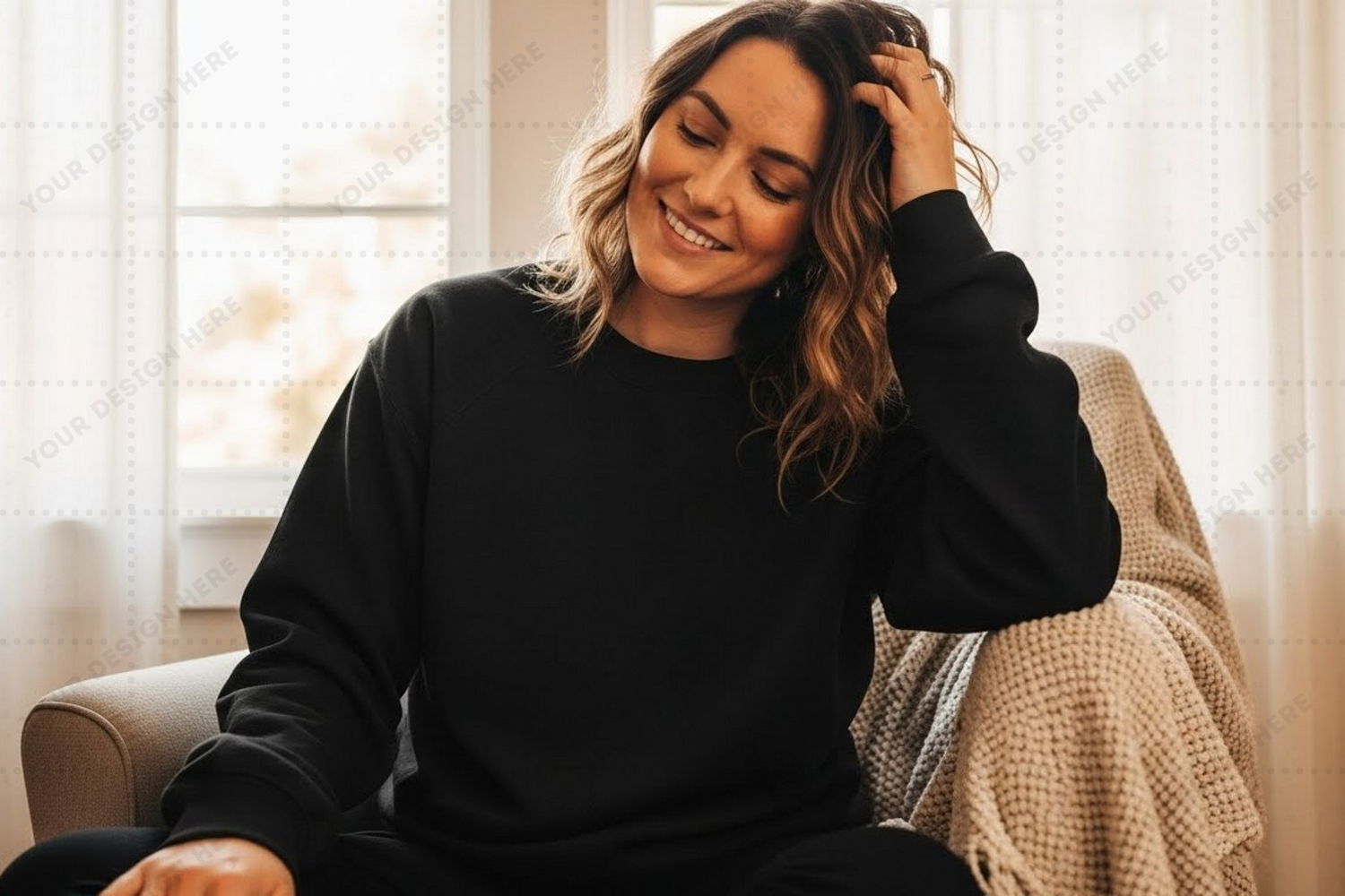 Black T-shirt Chair Comfortable Relaxed Mockup Design Casual Wear Everyday Wear Casual Look Loungewear