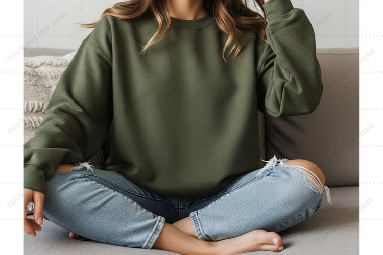 Similar Design Products to Olive green casual sweatshirt with distressed denim mockup
